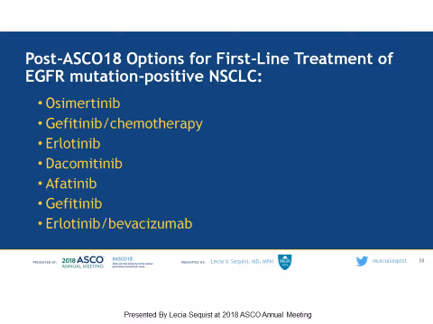 In short, immunotherapy is no longer “one size fits all” just like targeted therapy. We highly encourage patients to have informed conversations with their treatment team and talk to them about what treatment options might be right for them. If you have questions about treatment options, please contact our LungMATCH specialists.Targeted TherapyOptions continue to expand in the targeted therapy space too. We heard some excellent talks on how to use the expanding classes of ALK and EGFR targeted drugs along with other newer targets. Some new data presented included the following: