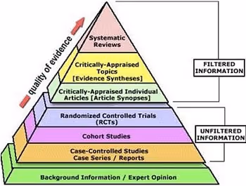 When judging what you read from publicly available sources, we suggest you use the Evidence-Based Medicine (EBM) Pyramid as a guiding framework.