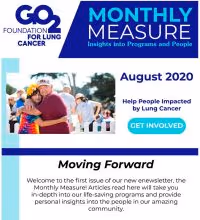 The Monthly Measure will be delivered in the first week of the month. Each issue will contain articles highlighting our work and our people. Expect to see: a newsworthy event, a unique perspective on an ongoing program, a profile of one of the people making a difference, and a link to a calendar of upcoming events. This issue leads with an article jointly written our two Co-Founders, Bonnie J. Addario and Laurie Fenton Ambrose, on the initiatives tied to Women & Lung Cancer. Don’t be surprised if you see future columns from Bonnie and Laurie to provide context around hot topics in the lung cancer space.The last few months witnessed many lung cancer community wins: draft recommendations that expand screening eligibility for those at high risk, a congressional hurdle cleared on the path to restoring $20 million in federal research funding, an incredible Voices Advocacy Summit where advocates made their voices heard, a successful Summer Jam Virtual 5K Your Way, the launch of a Sexual Health Assessment in Women with Lung Cancer survey (SHAWL), and the announcement of a partnership with the Department of Veterans Affairs (VA).You can find out more about our VA partnership and the fascinating SHAWL survey in this issue of the Monthly Measure, along with a profile of lung cancer patient and physician Sydney Yolande Barned, MD, and insights into what community activities made a winner out of our virtual fundraising event.The Weekly Breather enewsletter will continue with its patient and caregiver focus. We’ll be fine-tuning it in the future to enhance its value to our community who are information, hope, and empowerment.Thank you for supporting and caring about important lung cancer initiatives. To learn about more about programs and breaking news, please visit the blog portion of our website.Happy reading!
